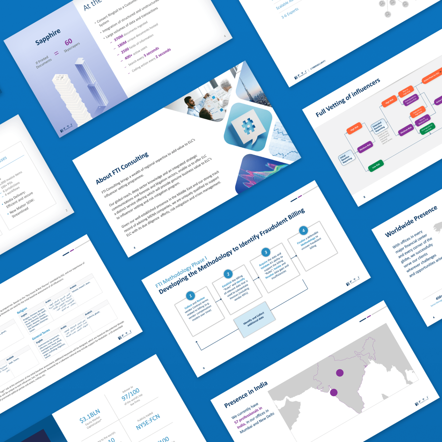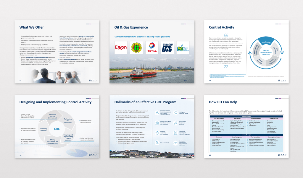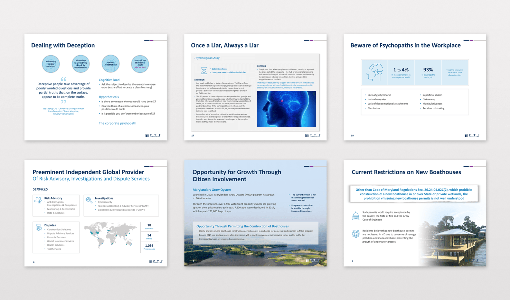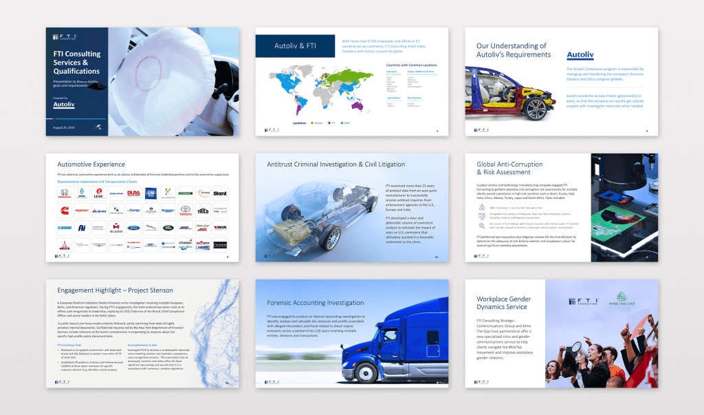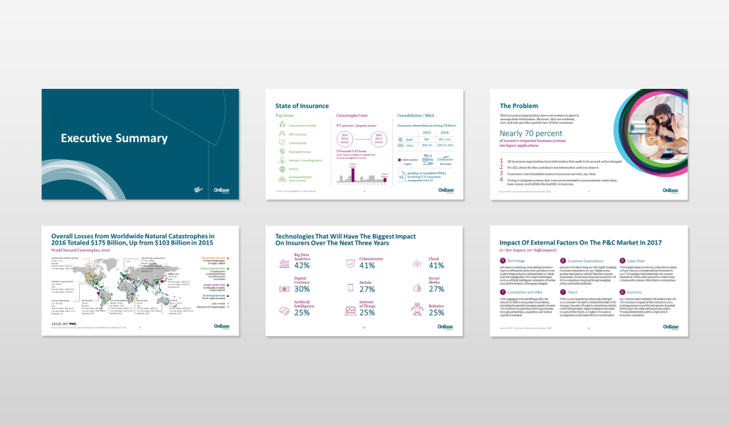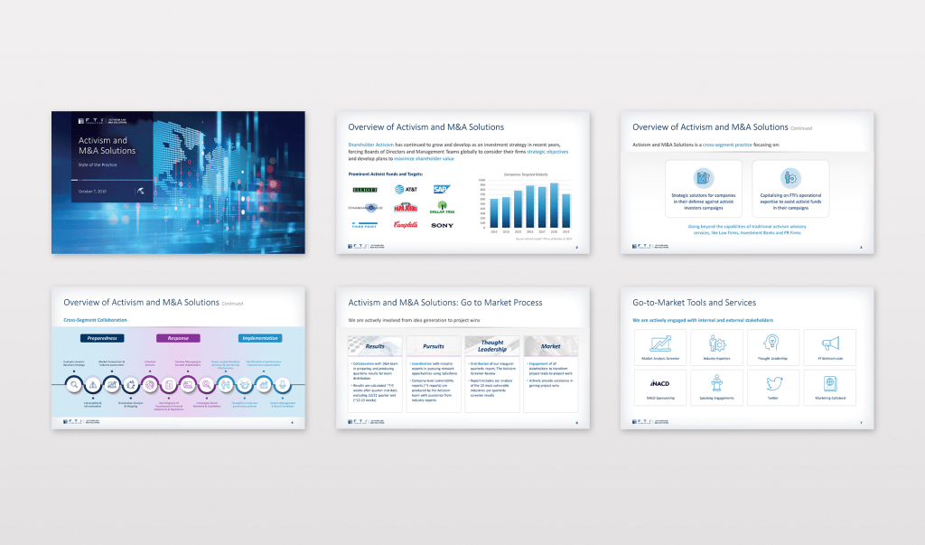 Slides for industries like hospitality, healthcare, technology, and financial services.